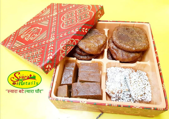 स्यारा रिटेल ने मिठाई की होम डिलीवरी भी कर रही है खास बात यह है मिठाई भी ठेठ पहाड़ी है जिसमे अरसे ,बाल मिठाई , चाकलेट मिठाई का कॉम्बिनेशन है । मिठाई का पैकेट में उत्तखण्ड की सांझी संस्कृति का विशेष ध्यान रखा गया है , मिठाई के पैकेट में गढ़वली अरसे और कुमाउँनी बाल मिठाई दाज्यू भैजी के प्यार को प्रदर्शित करती है ।